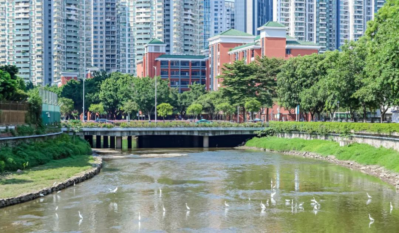 在碧道建设中,广州打造了一批融合优秀传统文化的标志性碧道节点。如天河区紧密结合岭南园林文化和龙舟文化,在猎德涌碧道重现“猎德通津,玉带缠腰”的秀美景色,以青石板路、廊桥、堤岸文化栏杆、景观花池、猎德龙舟、猎德鼓等文化元素,形成了“猎德八韵”系列特色景致,包括表现昔日猎德村龙舟庆典场面的“碧波争渡”,以猎德村千年古树为载体,营造滨水树影氛围的“榕影画堤”,猎德村复建祠堂为载体打造传统文化教育基地的“古祠醉影”等。同时依托碧道建设,因地制宜打造浅滩、湿地等多样化河涌环境,为市民朋友提供了水清岸绿、白鹭纷飞的滨水生态空间。