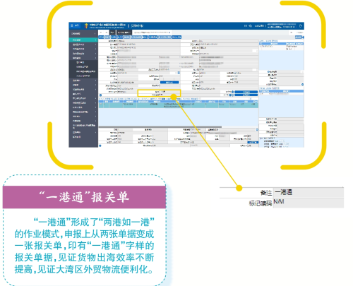 一张报关单背后,体现了通关模式的创新。2020年11月5日,“一港通”项目在广州启动。该项目以南沙港为枢纽港,内河码头和铁路陆港为支线港,通过优化海关通关和港口调拨等多个环节衔接,形成“两港如一港”“两关如一关”的作业模式,实现进出口货物“一次申报、一次查验、一次放行”,形成“生产—出货”的良性循环,有利于企业灵活安排出货周期,降低运输成本。