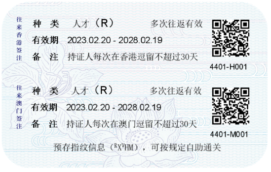 三、经公安机关出入境管理机构依法审批,杰出人才可以获发有效期5年的人才签注,科研、文教、卫健人才可以获发有效期3年的人才签注,法律、其他类人才可以获发有效期1年的人才签注。人才签注持有人可以在签注有效期内多次往来港澳地区,每次在港澳停留不超过30天。