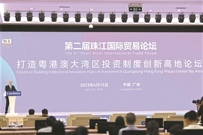 第133届广交会正举行。4月15日下午,作为第二届珠江国际贸易论坛之一的“打造粤港澳大湾区投资制度创新高地论坛”在广州举行。