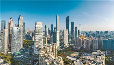 蓝天下的广州天河区中央商务区
