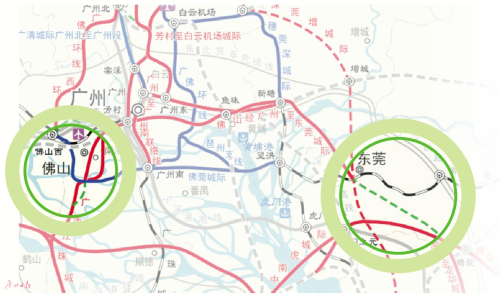 佛穗莞城际不仅要往西把江门珠海纳入“朋友圈”,往东还在争取连上深圳。根据国家发改委批复,佛穗莞城际东段仅到东莞,至于东莞至深圳,近期实施常龙城际(东莞常平至深圳龙华、福田)。按照原来的规划,两条城际在东莞无法衔接。
