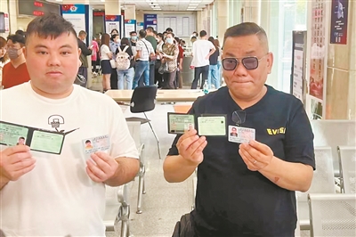 梁先生(右)和同伴首批领取内地驾驶证