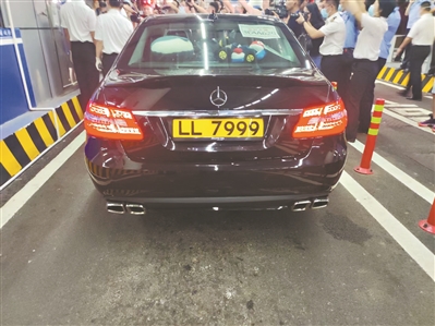 7月1日零时起,“港车北上”政策正式实施,成功预约后的香港机动车可经港珠澳大桥珠海公路口岸驶入广东。“LL7999”这辆香港单牌车,是第一辆入境的“北上”港车,车主李先生随车“一站式”通关后顺利入境。数分钟后,又一辆KA714牌香港私家车驶入港珠澳大桥珠海口岸。