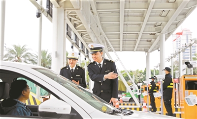 横琴大桥“二线”通道出岛通勤车辆驶入查验场。