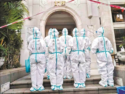 杨东所在的金道社区,辖区内一共2000多户,6000多名居民,小区内多是9层的楼梯楼。每天,杨东所在的“三人小组”成员都需要穿着防护服从早上9时挨家挨户排查,一直工作到中午1时。“虽然工作量很大,但是因为‘三人小组’分工非常明确,这个模式也给我们带来了很好的保障。” 杨东说。
