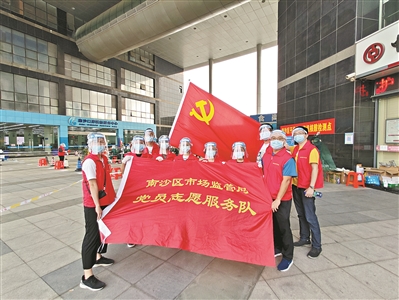 大事难事见担当,危难时刻显本色。在这场和病毒的较量里,广州市市场监管系统广大基层党组织和党员充分发挥战斗堡垒作用和党员先锋模范作用,筑起联防联控、群防群控的严密防线,让党旗在抗疫一线高高飘扬。