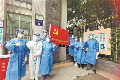 广州市市场监管局机关处室及直属单位第一时间抽调27名党员组成第一批党员抗疫工作队,分批“逆行”下沉到越秀区华乐街、荔湾区多宝街等多个街道,支援社区一线核酸检测工作。