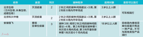 其中,北京生物、北京科兴中维所生产的均为灭活疫苗,全程接种2针剂,可以互相混打,可用于3岁以上人群接种。安徽智飞所生产的为重组亚单位疫苗,全程接种3针剂,目前只能用于18岁以上人群接种;由于目前国内重组亚单位疫苗只有这一种产品,现阶段不能与其他新冠病毒疫苗混打。