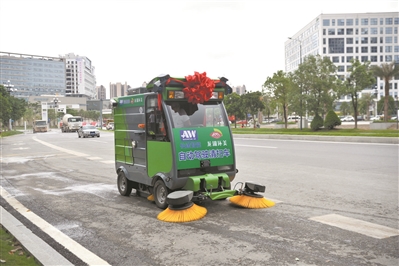在海心沙,记者看到了一个特殊的“环卫工人”——无人驾驶清扫车。车头巨大的黄色刷子、亮丽的车身以及空空的驾驶室,都显示着它的与众不同。据介绍,无人驾驶清扫车配置了旋转边刷与喷淋系统,可以极大地提高路面垃圾清扫的效率。实践证明,无人驾驶清扫车不但提高了环卫作业效率,在极端情况下也可避免环卫工人暴露在危险之中。