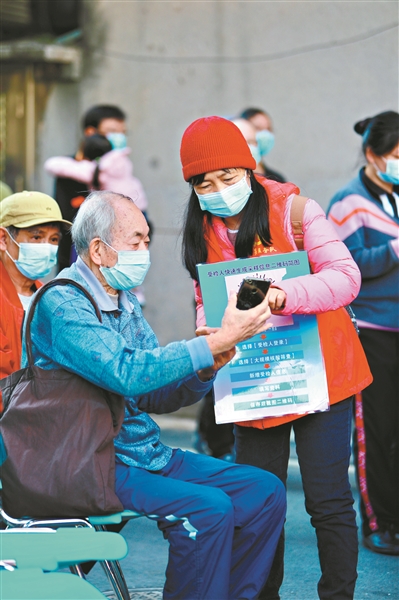 “年满70岁的老人可以走绿色通道进行核酸检测。”在越秀区淘金路36号~38号旁边小广场的核酸检测点,来自中山大学博士三年级的志愿者李庚不时重复着这样的提示。李庚的专业是公共管理,半个月前才来到华乐街实习。“无论我作为一名博士生还是一名街道实习生,我都应该贡献自己的微薄之力”。