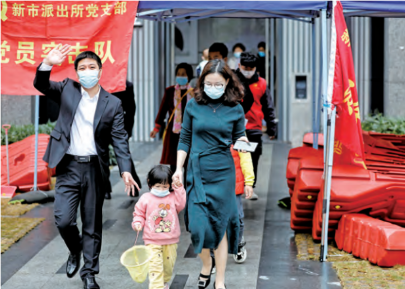 保利紫云小区A2栋住户居民在签署《解除居家医学观察告知书》后,第一时间下楼散步。
