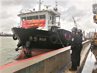2月22日上午9时许,装载9吨速冻食品等民生物资的往来港澳小型船舶“粤翔8”轮从中国外运黄埔仓码公司码头,出境前往香港。