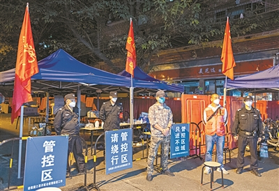 “我们接到通知,要对不同区域进行分级分类管控后,迅速准备物料、设施,在很短时间内就完成了封控区的围蔽,启动封控。封控、管控区内的每一个巷口,还安排了工作人员巡查,要把服务、管理工作落实落细。”工作人员告诉记者。