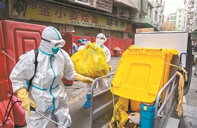 “居家隔离户的生活垃圾风险最高,如果不彻底消毒,后面环节的工作人员就会有危险。”卢德恩说,收运垃圾的同时,大家还对住户的门把手、楼梯扶手、地面进行彻底消毒。