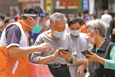 “这里是排队做核酸采样的地方吗?个人信息要怎么输入?”家住体育西小区的梁婆婆买菜回来,路过中轴线广场核酸采样点,对手机使用不太熟练的她有点茫然。