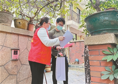永平街新顺社区居委会分成两个小组,工作人员逐家逐户送去解除居家隔离医学观察告知书,并为每家住户送上一份爱心礼包,里面装有4只苹果、2朵康乃馨、1个防疫包、1封感谢信,寓意平安顺遂,爱与温馨一路相伴。封控区内52名居民又将重新投入到忙碌的工作生活中。