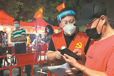 在多个核酸采样点,引导宣传、秩序维持等相关服务岗位上随处可见身穿“红马甲”的党员志愿者,他们冲锋在疫情防控第一线。