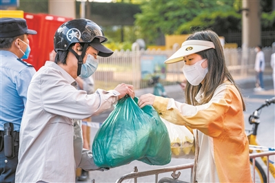 70岁的刘阿姨购买了鸡蛋挂面和速冻叉烧包。她表示,4月10日是管控的第一天。“坦白说,刚开始的确有点担心,不知道物资是否紧缺,也担心家里的生活必需品不足,但现在看到物资供应及时、充足,我就放心啦。我测完核酸,还可以顺便过来买些面条、面包,很方便,价格也合理。”刘阿姨说。
