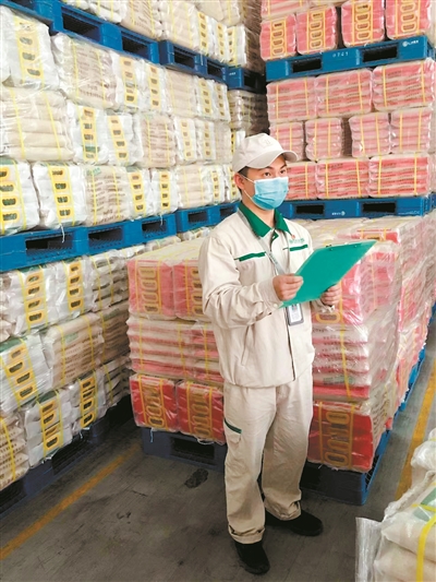 广州市粮食集团准低温配送仓,一袋袋大米整装待发。