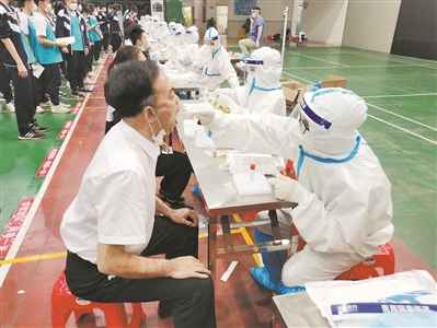 广州五中师生正在做核酸检测。