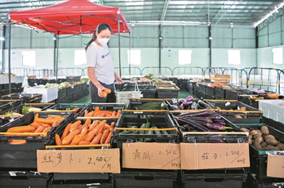 市民在“市场”选购平价蔬菜。
