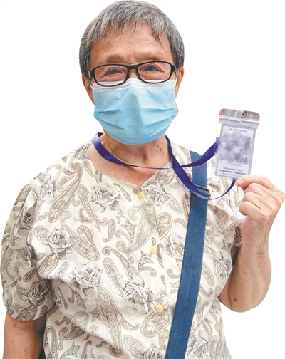 值得一提的是,南一路社区为辖区内的老人印制了核酸检测卡,老人只需要佩戴此卡,便可以进行信息登记。梁沛瑜表示,过去社区需要安排不少志愿者协助不便使用手机的老年人登记信息,现在社区把葵花码、大规模核酸检测码和常规采样码,双面印刷在一张卡上,方便老人的同时,志愿者的工作压力也减轻了不少。