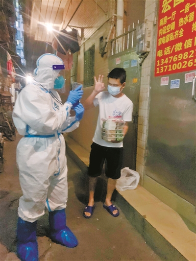 “志愿者每天给我们送饭,给他们点赞。我们四个聋哑人不会说,不方便订餐。”这是海珠区高风险区客村片区居民平先生给记者发来的信息。