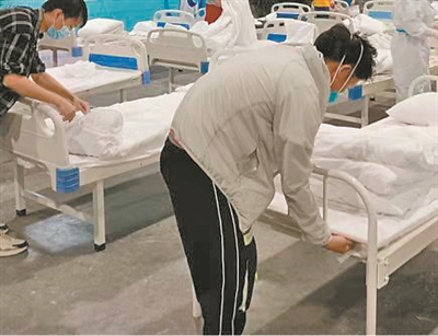任务艰巨,需要搬床垫,搬床单被套,枕芯枕套,分配床位……“没想到方舱内的患者看见我们忙碌的身影,自动加入到我们的队伍中!”李玉希说。“这些太重了你们搬不动的,放着让我们来!”“放着,我去找几个人来帮忙。”“这些床铺我们可以帮忙铺吗?”一大批志愿者的加入,令病床布置任务高效完成。