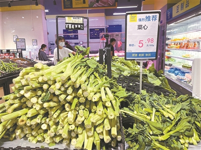 记者走访了解到,上午8时许,白云区心谊路两侧的钱大妈、菜鲜生、西亚兴安生活等多家超市、生鲜卖场热闹起来,街坊们有序购买肉菜蔬果,菜价与平时变化不大。