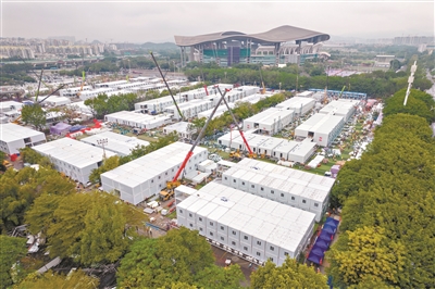 广州市天河区体育公园地块应急项目占地面积8.1万平方米,建筑面积4.7万平方米,整体规划建设2565个打包箱,共7000个床位。截至11月22日上午9时,广州市天河区体育公园地块应急项目东区打包箱已安装1129套,隔板已安装810套,暖通安装、电气、给排水等工程施工正在压茬推进,床、空调等也已陆续安装。