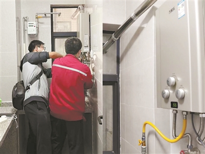 万事俱备,只欠东风。次日早上6时,热水器厂家进场安装。由于人手不够,网格员们便一起和厂家的施工人员更换燃气表电池,连接热水器水管、气管。第三天0时,最后一台热水器打开流出热水,完成所有扫尾工作。随后,第一批人员入住,他们将在房间里用上热水,睡上好觉。