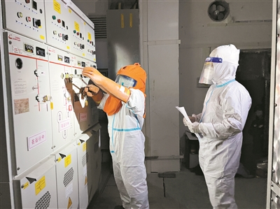 供电人员身着防护服,利用应急电源为呼吸机临时供电,解决老人的燃眉之急。同时,用电检查人员已发现故障原因,他们协助物业做好安民通告,办理复电方案,协调维保单位进行物资跨区调配,现场把关抢修质量,缩短复电时间……经过7个小时的连续奋战,当日傍晚,南华西大厦专变电房设备完成合闸送电。