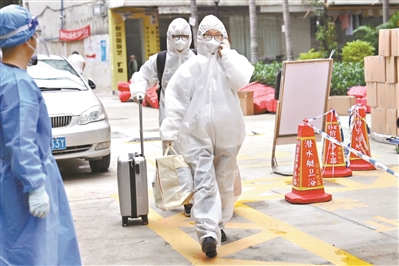 11月26日16时许,黄如蝉与先生何梓豪穿着防护服在家楼下等了片刻,电瓶车便开到了小区门口。只需走五十米,他们就坐上了电瓶车,随即被缓缓载到两百米远的路口,救护车已在那里原地待命。不到十分钟,他们便到达集中安置酒店——位于南洲街道的丽枫酒店。据悉,她不仅会有丈夫的陪伴,还能得到医疗、饮食、心理等全方位的照顾。