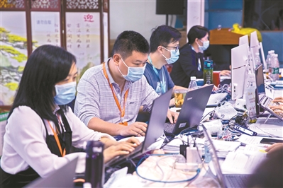 海珠区流调中心的流调队员在处理个案资料