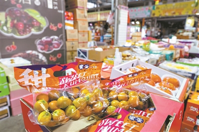 记者注意到,当前市面上,橙子、柠檬、梨等水果格外受欢迎。江南市场档主杨女士正在和员工们一起打包客户需要的一批江西脐橙。据她介绍,自家的脐橙都是当天采摘,当天运到档口。