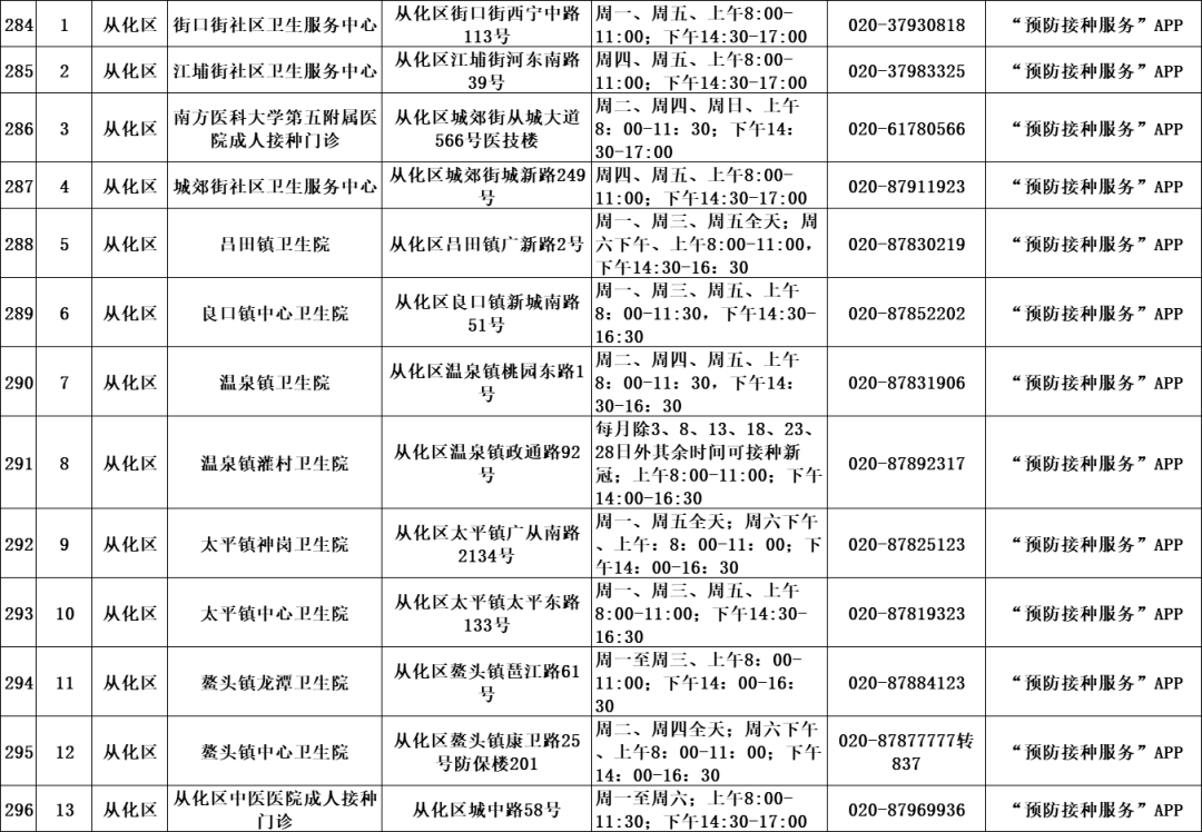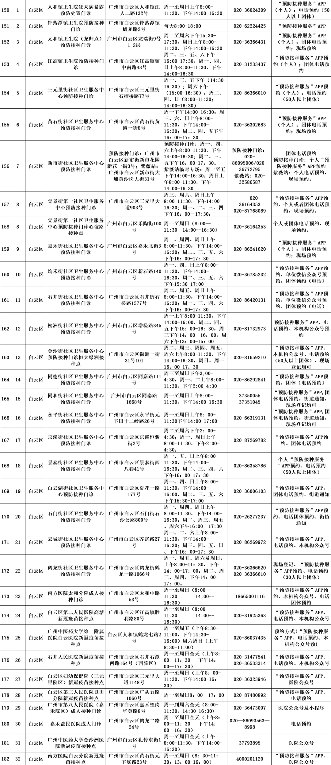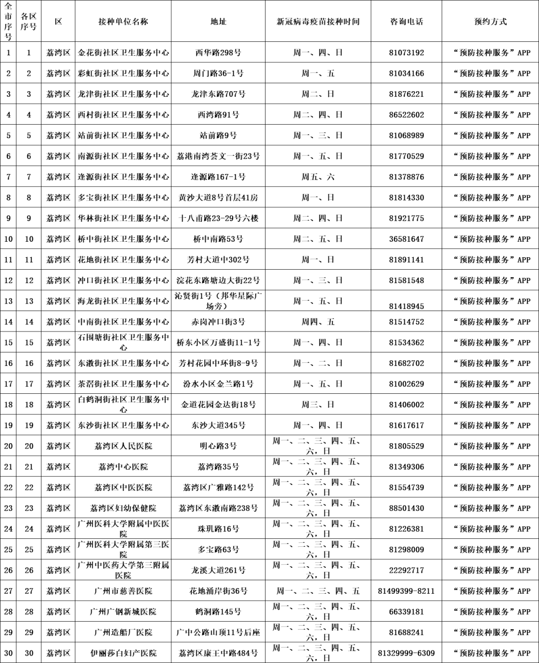 根据国家、省的统一部署,广州市现已全面启动新冠病毒疫苗接种工作。日前,广州市疾病预防控制中心公布新冠病毒疫苗接种常见问答,以及全市11区的296家新冠病毒疫苗接种单位名单、地址、接种时间和预约方式等信息。
