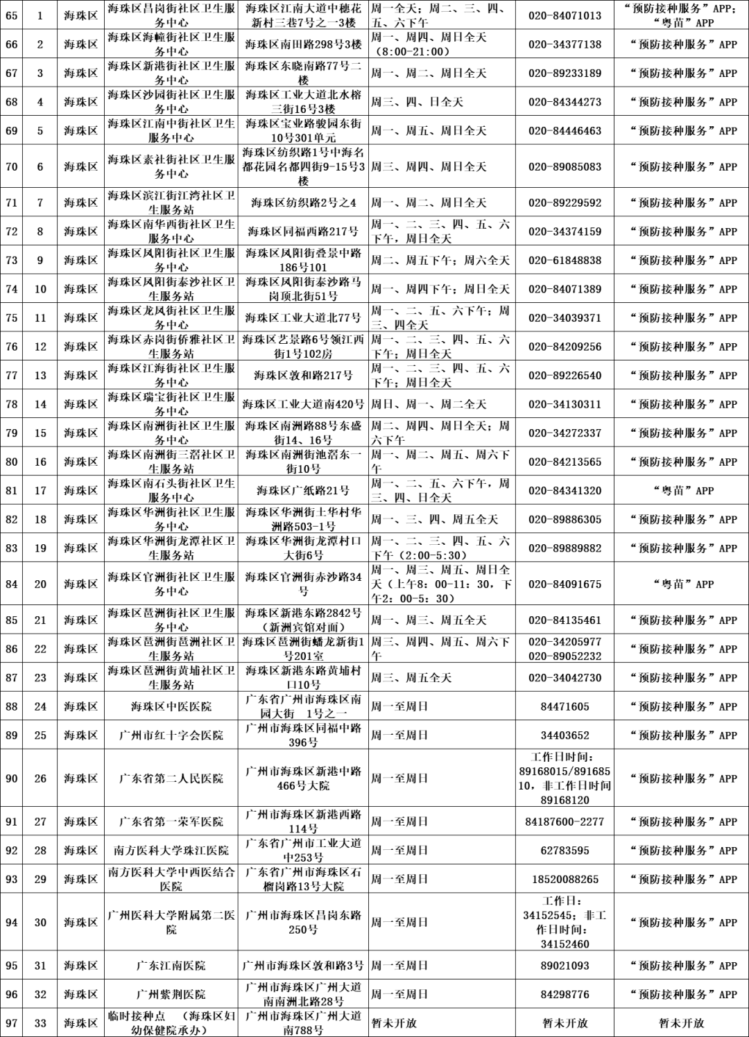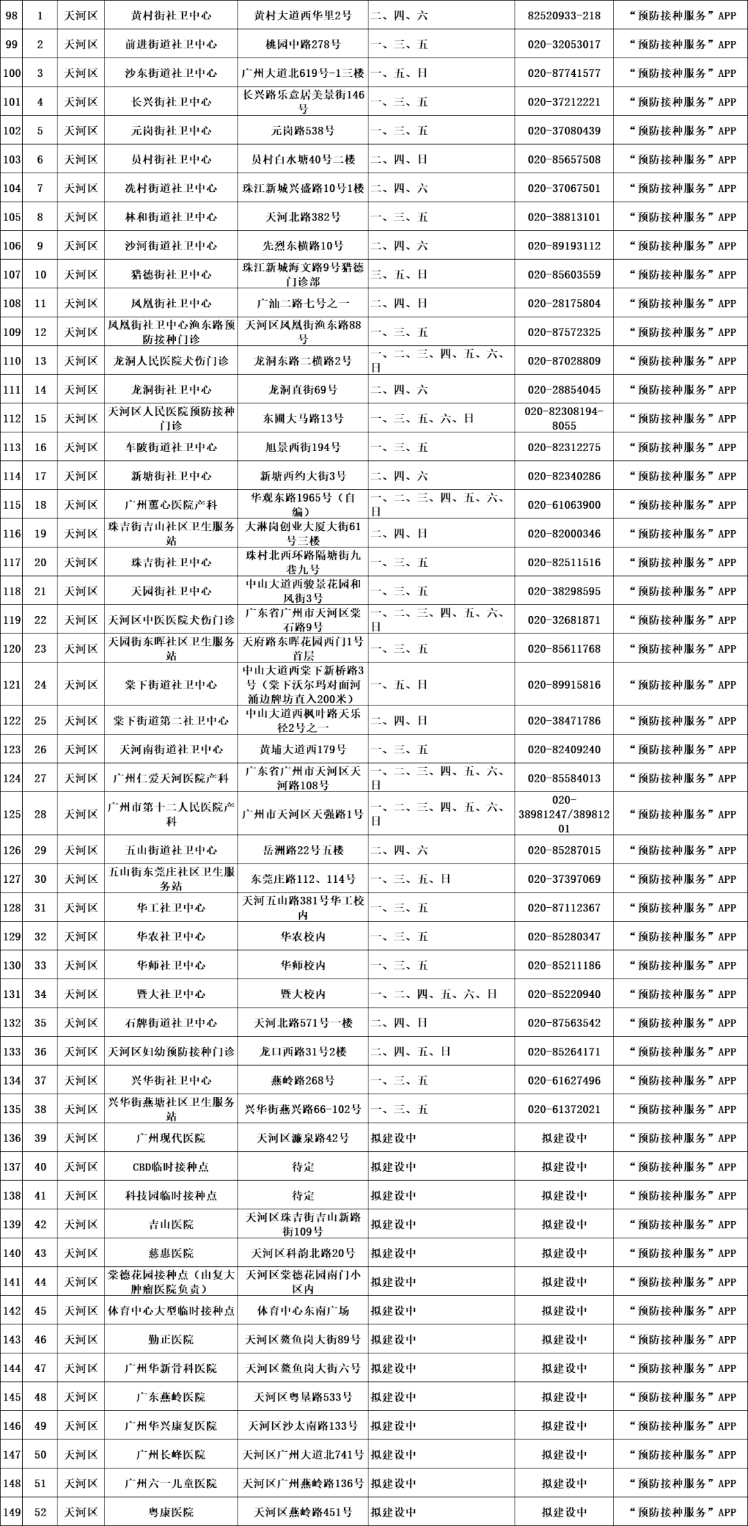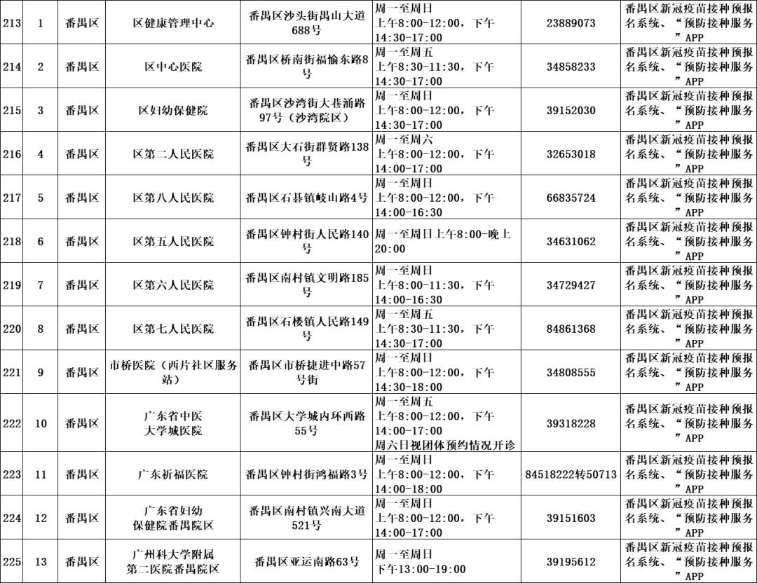 根据国家、省的统一部署,广州市现已全面启动新冠病毒疫苗接种工作。日前,广州市疾病预防控制中心公布新冠病毒疫苗接种常见问答,以及全市11区的296家新冠病毒疫苗接种单位名单、地址、接种时间和预约方式等信息。