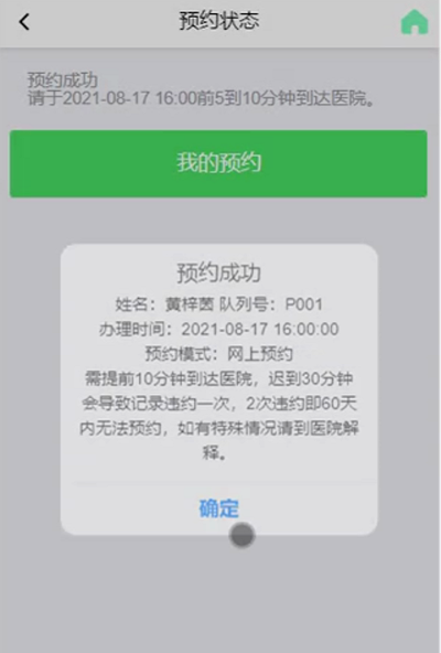 3.预约信息填写完毕后,点击提交即可预约成功!