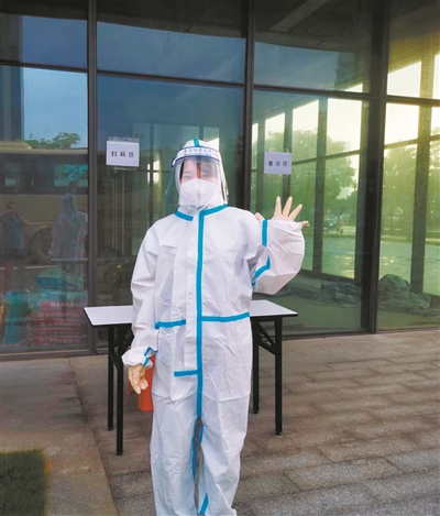 “今年的母亲节不能跟孩子和自己的妈妈一起过,我想送给自己一份特殊的礼物,是一张穿上‘大白’衣服的照片。可能孩子和母亲都认不出了,但一定会为我感到自豪。至少孩子下次核酸采样时不那么害怕,因为知道妈妈也是其中一员。”杨华琦说。