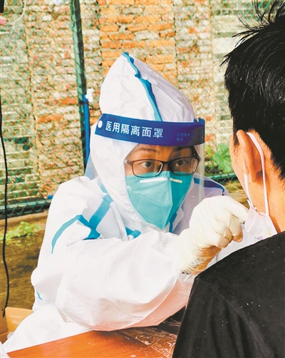 “其实每天我都回家的,但前阵子工作都是早出晚归,每次回家她都睡着了。”一个多月来,罗清清一直忙碌在核酸检测一线。最开始是进行核酸检测扫码信息采集工作,“虽然内容比较简单,又有风扇,但两个小时的大白服穿下来,就会全身湿透。”她说。