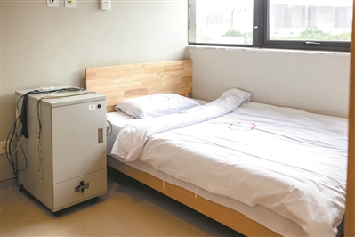 在广医一院门诊四楼的睡眠医疗中心,有20多间睡眠监测室,每一间里面都摆着一张床,床头还有相关的监测仪器。
