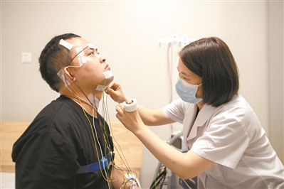 据赵东兴介绍,受测者一般是头天傍晚六七点钟到睡眠医学中心,接受睡眠的相关健康宣教,并做一份评估问卷,做好睡前准备后,医护人员就会帮其接上导联,让其在睡眠监控室里睡上一觉,第二天早上的六七点醒来就可以离开了。医生随后会对其相关检测数据进行分析,整理出其睡眠评估报告,并据此制订进一步的治疗方案。