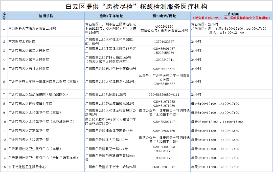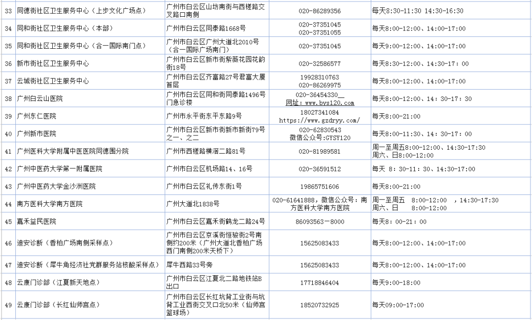 白云区49个“愿检尽检”核酸检测点