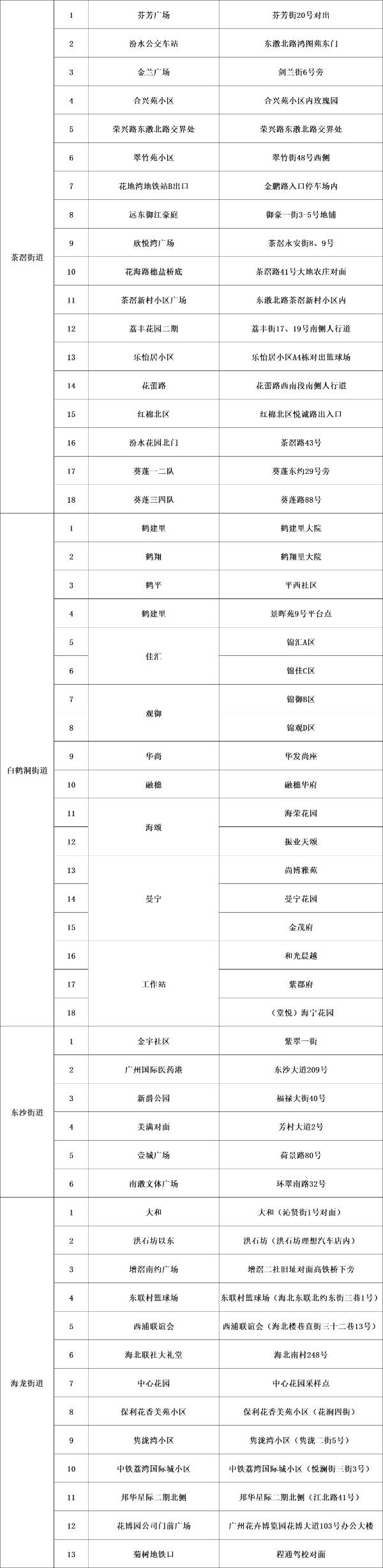 荔湾区10条街道核酸检测临时采样点