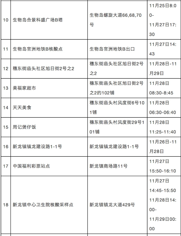 根据疫情处置进展,经专家组综合研判,区新型冠状病毒肺炎疫情防控指挥部研究决定,自2022年11月30日14时起,下列区域调整为低风险区,落实“个人防护、避免聚集”管控措施: