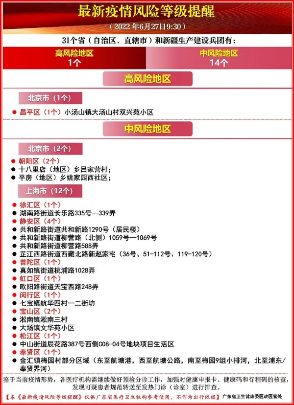 最新疫情风险等级提醒(截至6月27日 9:30)详细风险区查...