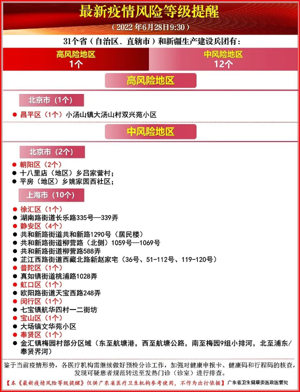 最新疫情风险等级提醒(截至6月28日9:30)详细风险区查询...