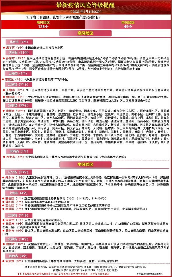 最新疫情风险等级提醒(截至7月4日 9:30)详细风险区查询...