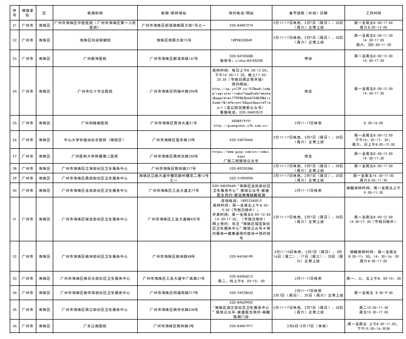 市民群众新冠病毒核酸检测须知!全市167家新冠病毒检测服务点名单及服务时间